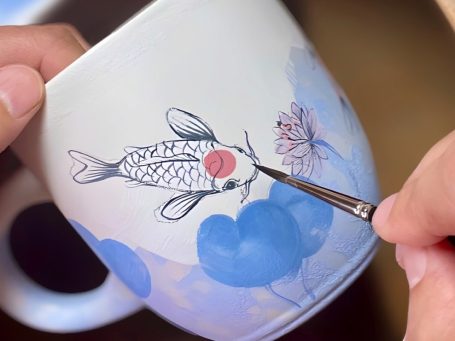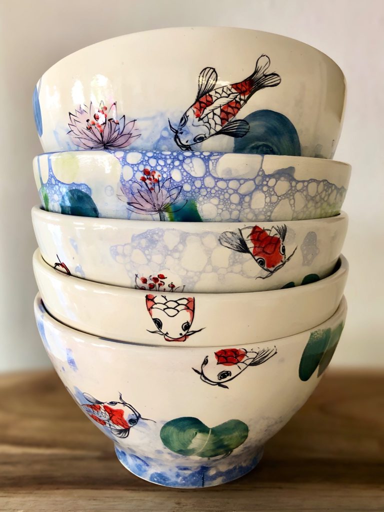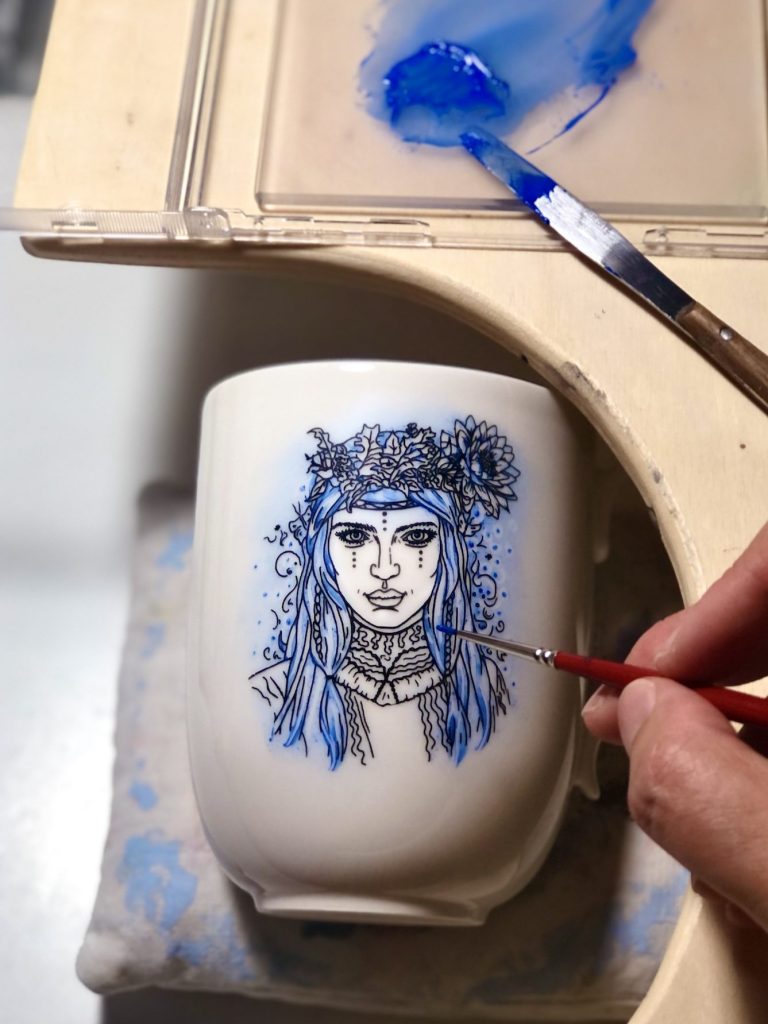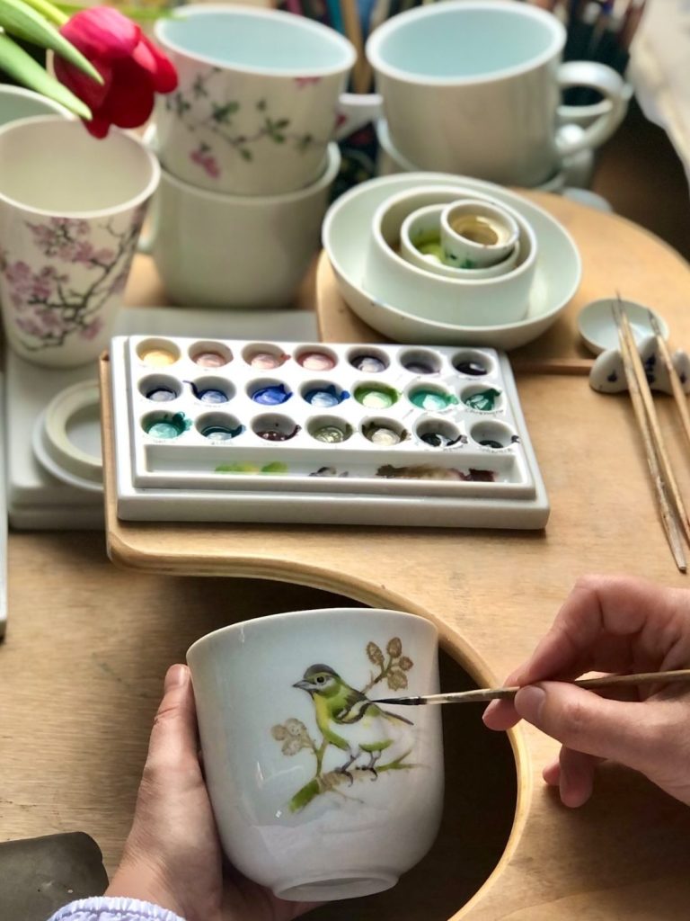 Im historischen Handwerkerhaus Kirchgasse 26 in der Nähe der Augsburger Puppenkiste bemale ich Keramik und Porzellan nach eigenen Entwürfen.