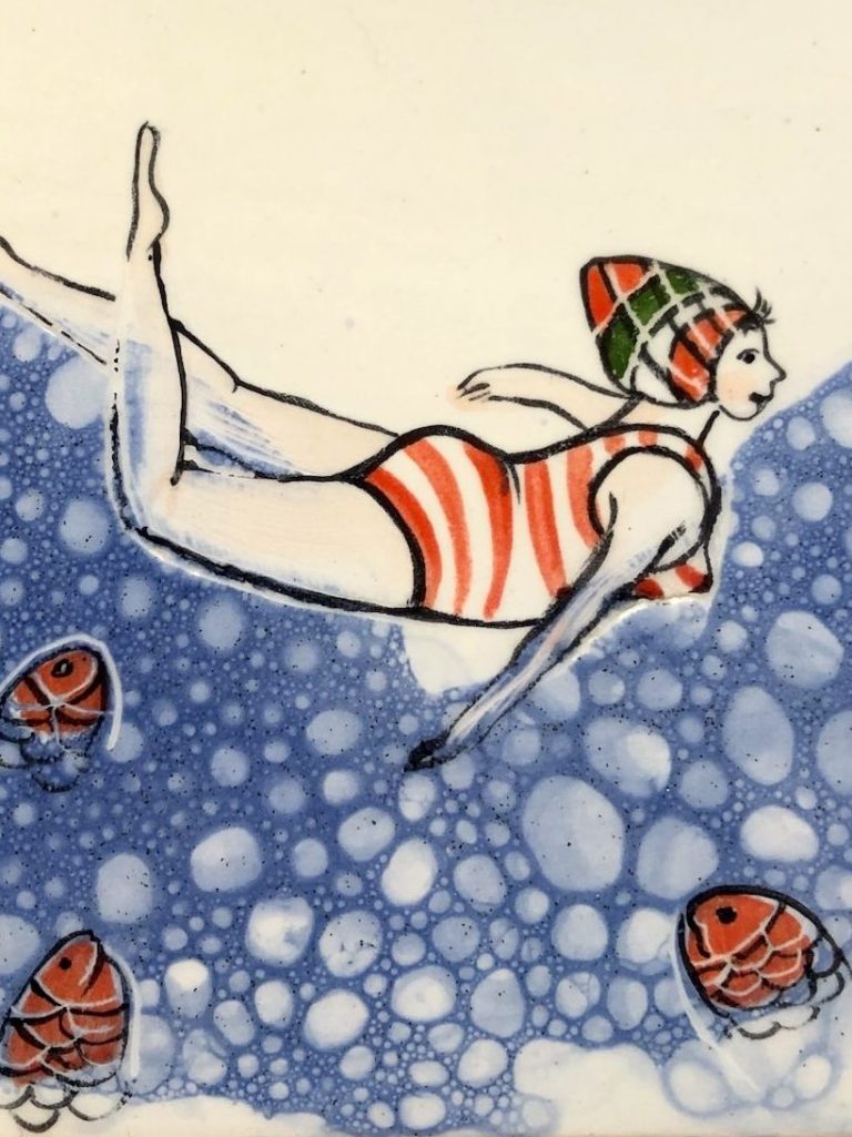 Wassermotive male ich oft und gern, z.B. meine Augsburger Schwimmerin, Badende und lustige Tiere am Lech.